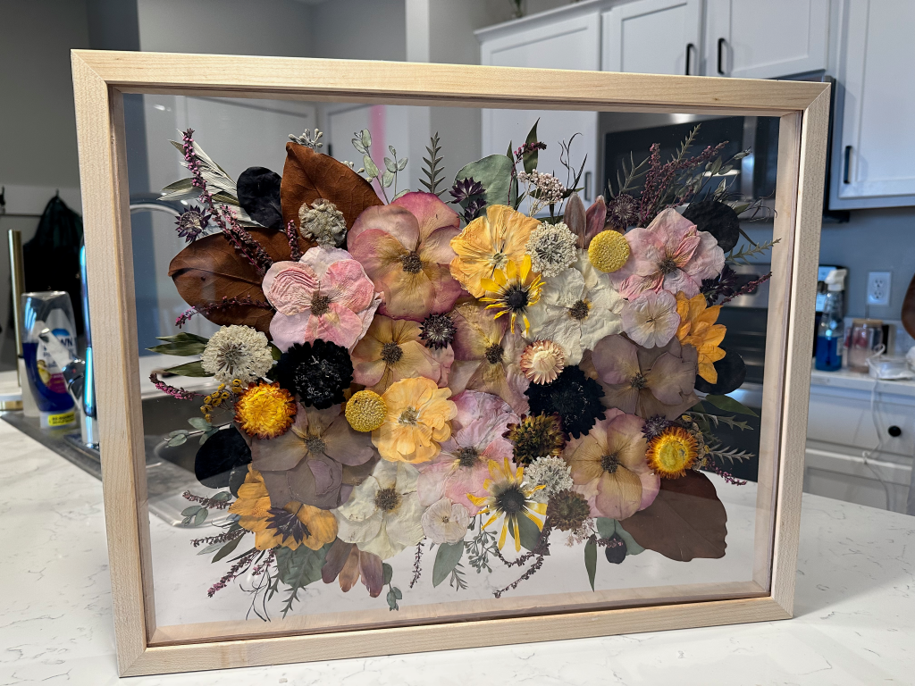 Our talented female artist and business owner specializes in working with live flowers and pressed florals. Monet’s passion for art began at a young age, and she has since honed her skills through years of training and practice working as a lead florist for weddings and events, which ignited her passion for pressing florals. Monet’s signature works showcase her attention to detail and commitment to craftsmanship that simply cannot be replicated in a factory.