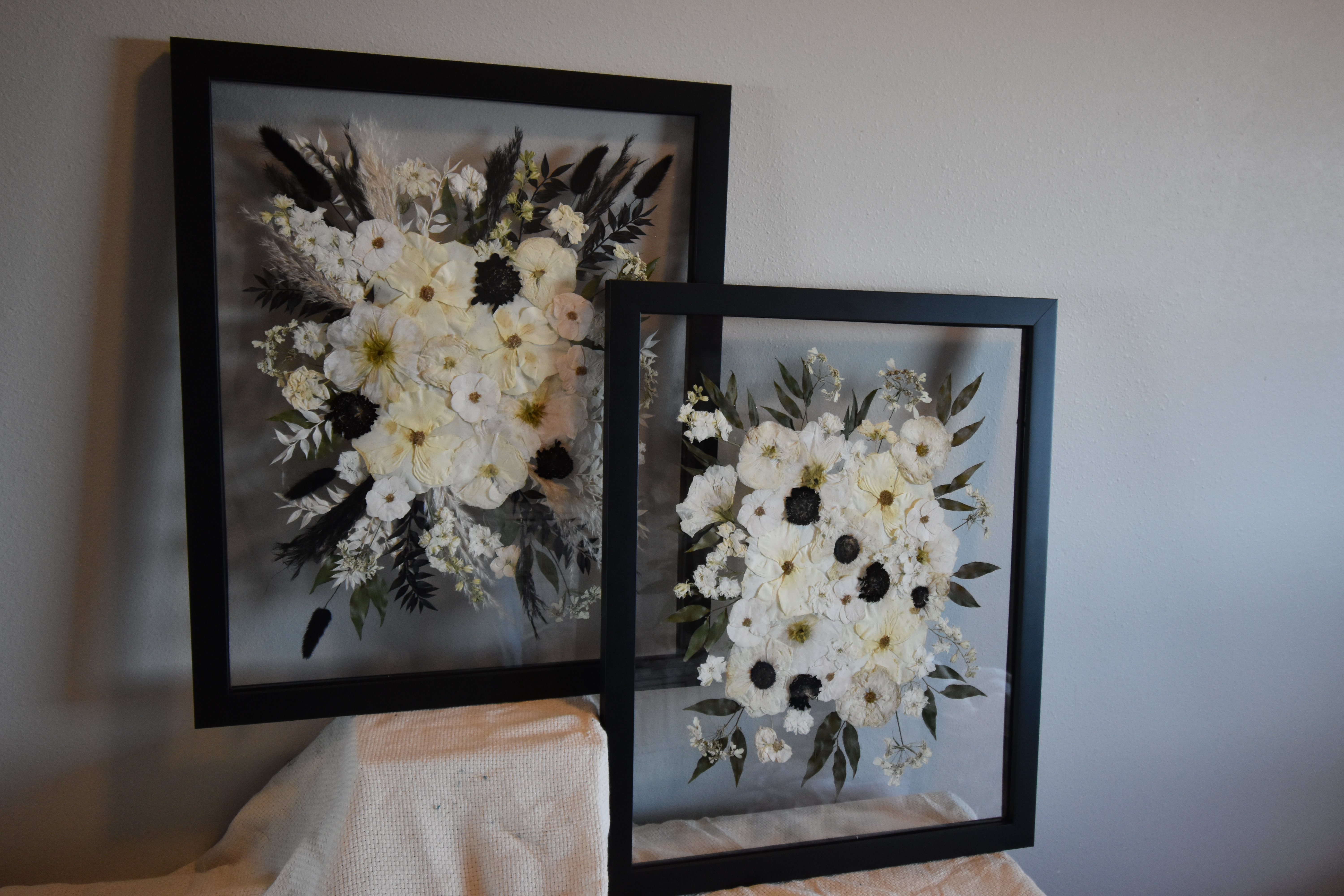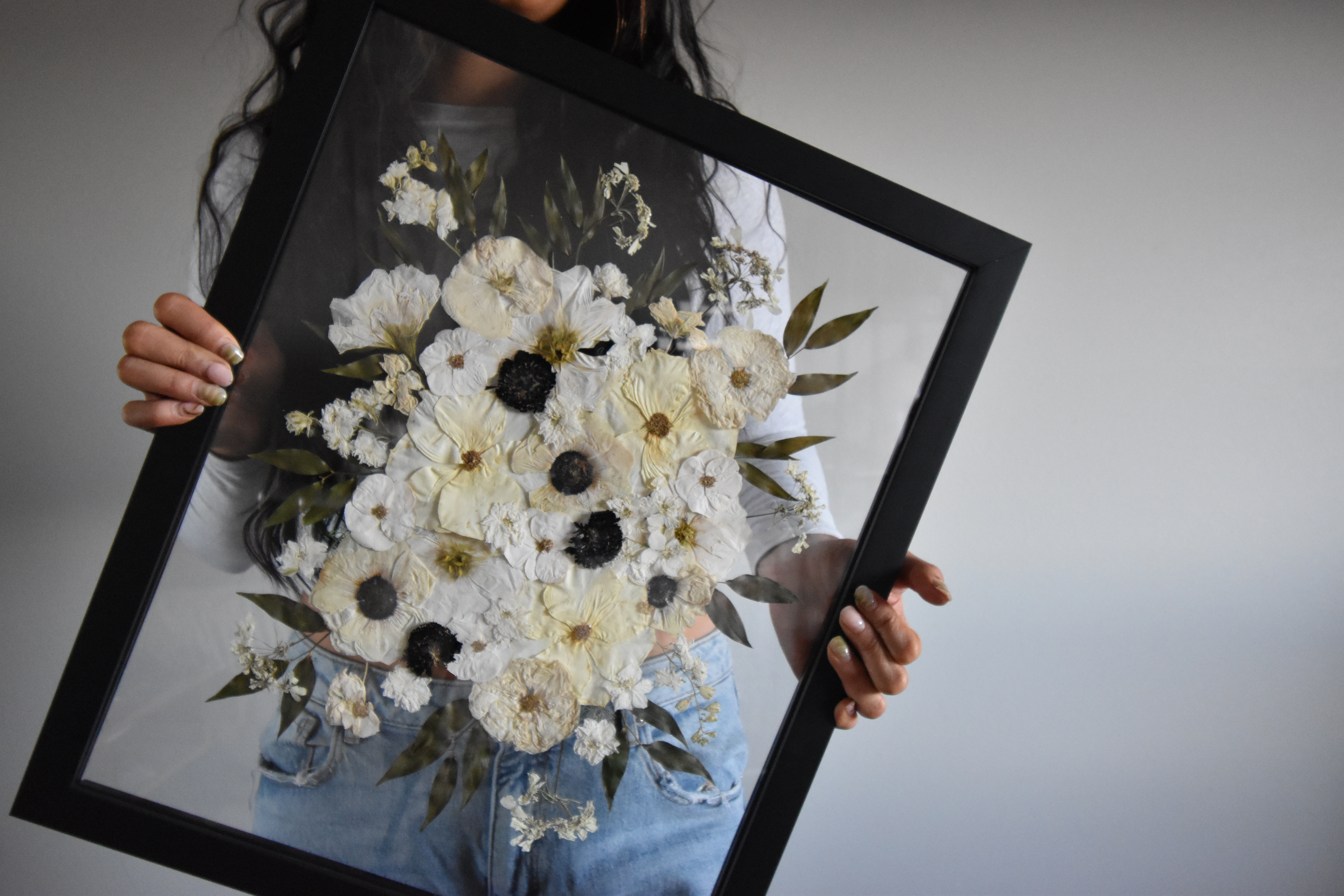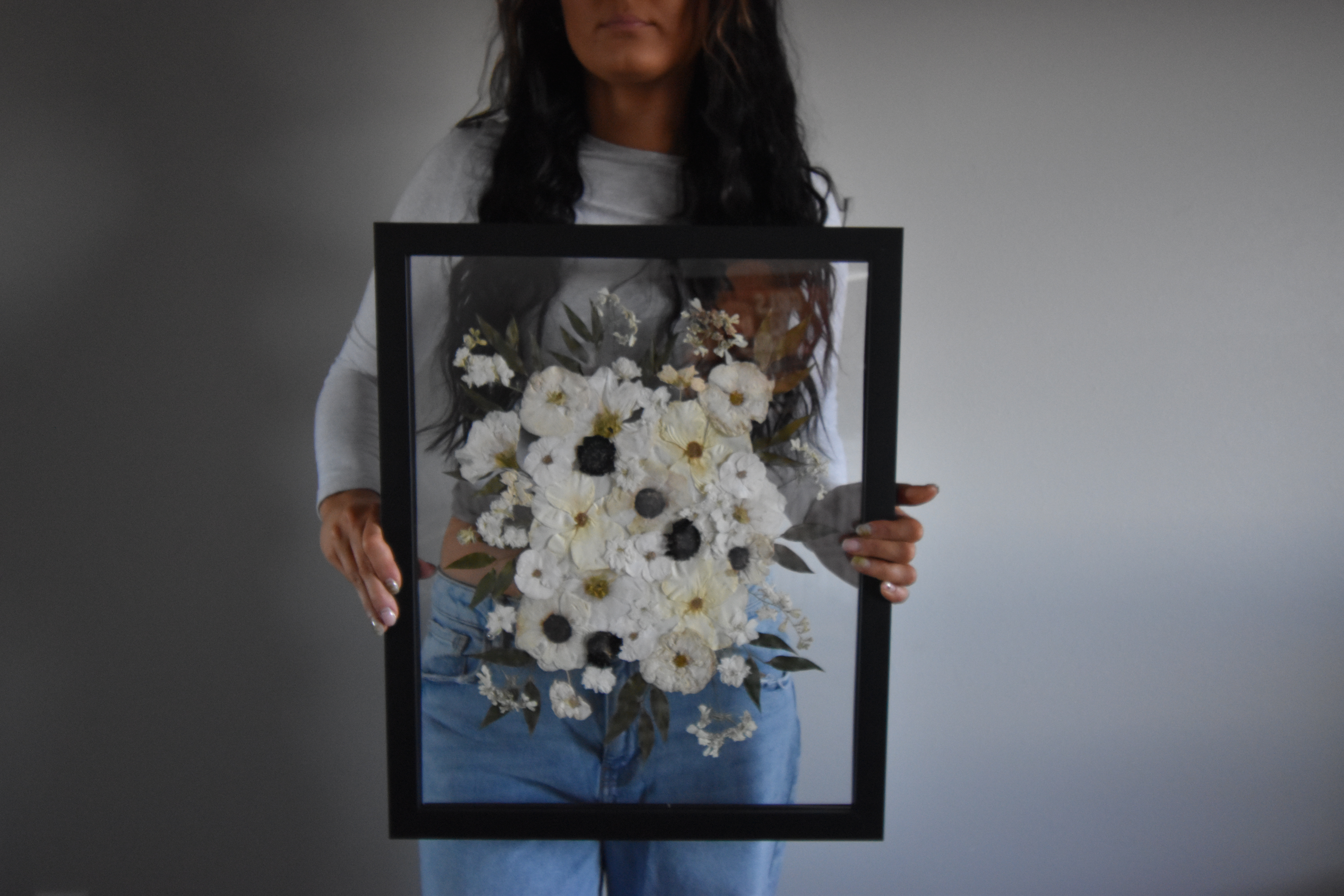 *A 16″x20″ or larger frame is recommended for full wedding bouquets unless you wish to break up the bouquet into a series of smaller frames (please complete a custom quote request for multiple smaller frames).